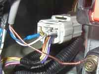 How you make a connection to this wire is up to you. If you don't mind a miniscule modification to the car, I think the best way is to use an insulation displacement splice. This clips over the existing wire and your new wire and punches through the insulation. You don't have to cut the existing wire. Or, you can splice in some other way. I happen to be unreasonably paranoid about modifying the car. I took a heavy duty paper staple, straightened it out and soldered it onto the end of my sensor wire. I put two layers of heat-shrink sleeving over the soldered joint to reinforce it and act as a sort of handle. Then, I poked the staple into the back of the SMR connector so that it slid in between the plastic housing and the metal contacts of the appropriate pin. If you pick the right staple or piece of stiff wire, this forms a decent connection but can be removed without a trace.