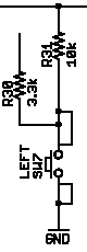 Switch current (when closed) is set to about 0.5 mA by the 10 kohm pull-up resistor (R31), assuming a 5 volt supply. The 3.3 kohm resistor (R30) provides current limiting to about 1.5 mA in the event that the connected port bit is driving high and the switch is closed. Thus, it is not only safe to allow this, the port will also be able to drive a valid logic level. If you use different resistor values here, take into account whether you want to allow the port bits used to read the switches to be also used as outputs to drive something else.