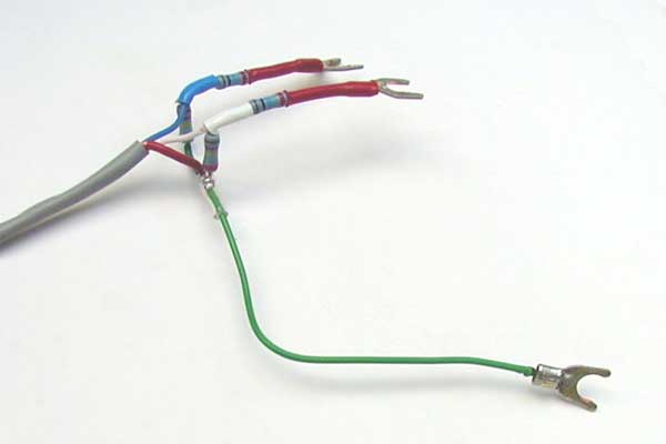 The picture at above right (click for a larger one) shows the "safety" circuit before assembly to the car at the SMR terminals. The 10 Mohms resistors are at the top, well insulated with heat-shrink tubing. The 220 kohm resistors stand vertically with the chassis connection at the bottom and the green wire leading down and right. The wire to the rest of the voltage sensor circuit is at the left. Its shield connects to chassis and two color coded conductors connect to the junctions of each pair of 10 Mohm and 220 kohm resistors. As I've done my best to explain, no voltages appear on this wire that you couldn't find on household batteries.