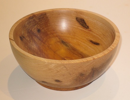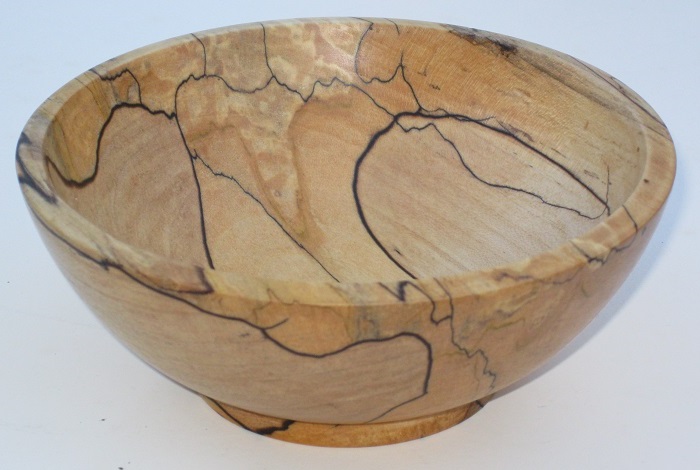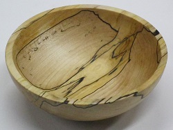 Attach:Bowl5InchSpaltedMaple1.jpg Δ February 28th, 2024 - The First (the Least Interesting) Spalted Maple BlankThis blank has actually made more trips to the lathe than any other, so the date is just when I completed it. It turned no differently from the others, except that I was better prepared and had soaked it with wood hardener. From the photograph, you can see that it's still very interesting. That's because I've positioned it to hide the plain, boring part, a large patch where there is just ordinary maple wood. After doing the best I could with the bowl gouge, I had to power sand the inside with the two-inch disks starting at 150 grit. I'm not unhappy with this; it's a challenging wood.