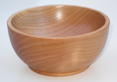![]() January 22nd, 2024 - The First Cherry BlankCherry is described on the Wood Database as "one of the best all-around woods for workability". I find it a dream to work with, it is reasonably priced and looks elegant, although lacking the impact of some more expensive and difficult woods. Somehow, after my eBay spree (above), I only ended up with two small pieces. So, I delayed using one up until I felt that I would get a decent result. As expected, I found this wood easier to work than maple, zebrawood and ash, although this could be partly due to the practice I'm gaining. From the 4" x 4" x 2" blank, I got a 3 7/8" diameter 1¾" tall bowl. I'm very happy with the shape; my earlier attempts were too vee-shaped.
