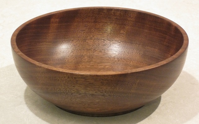 ![]() March 22nd, 2024 — The American Black Walnut BlankI feel ready now to tackle bowls that I really don’t want to mess up. First will be the walnut blanks, of which I have four, all six inches across or larger. I’ll begin with the American black walnut in the initial batch of blanks from December, 2023. This cost me $20.46, five times the price of the four-inch blanks. The “Comments” section of Black Walnut’s entry in the Wood Database reads “It would be hard to overstate black walnut’s popularity among woodworkers in the United States. Its good working characteristics, coupled with its rich brown coloration puts the wood in a class by itself among temperate-zone hardwoods. To cap it off, the wood also has good dimensional stability, shock resistance, and strength properties.” Slightly contradicting this, I have read that walnut blunts tools rapidly and I have to agree with this. Sandpaper is spent very quickly. Setting aside the need for frequent tool sharpening, I found this blank as pleasant to work as soft maple (above). In places, I had my usual problem with tool chatter (tool bounce?), but was able to fix it by taking a new cut that ran deeper than the ripples produced by the chatter. I’m slowly getting better at starting my push cuts on corners, but there were still a few times when the gouge zipped off sideways (I think this is called skating). However, a new problem appeared, which was torn grain on the inside close to the top edge. There were two areas, just as you’d expect, where the grain direction was unfavorable. There would be a buzzing sound and I would have rough patches about the size of peppercorns. I made the mistake of thinking that I could correct this by sharpening the gouge and making a very careful final cut. The same thing happened. Now the wall thickness was too small for any experimentation. Scraping with the tools I have was not working and I fell back on sanding (and sanding and sanding). I rescued the bowl’s appearance, but I can feel unevenness in the wall due to it having been defined by sanding and not the tool. Ugh. I have ordered a half-inch round point scraper from Craft Supplies USA. 5¾ inches in diameter by 1⅞ inches tall.