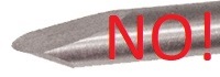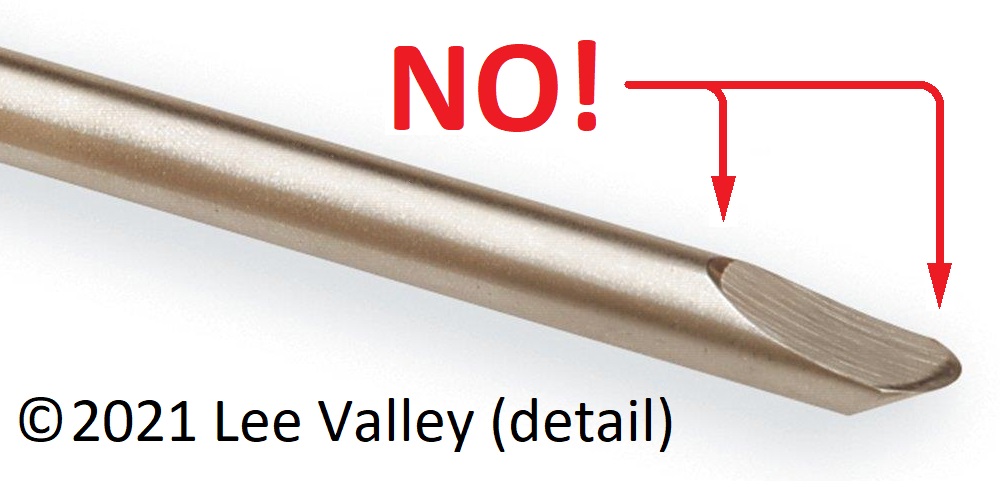 Sharpening the SkewchigougeI am not the best person to tell you how to sharpening a skewchigouge. As I type this, I have been woodworking for less than a year and turning for just a couple of weeks. However, unless I am an Internet dunce, nobody else seems to be stepping forward to tell you (or me) how to do this, so here we are. I will try very hard not to be actually wrong. ![]() What is a Skewchigouge? Why and Where Would I Get One?The skewchigouge is a lathe tool invented by English woodturner Allan Beecham. It is claimed that the tool can perform most of the functions of both a skew chisel and a spindle gouge. At the same time, it is free from the problem of "catches" when slightly mishandled, which is the bane of the skew chisel. In my opinion, these claims are entirely justified and I've found the tool to be a delight to use. Crown Hand Tools Ltd., in Sheffield England "proudly" manufactures the "Alan Beecham Skewchigouge" (it's a pity Crown couldn't "proudly" spell his name correctly). It looks as if you can only order them in packs of six. The product photograph (at right) looks exactly like what I have. Note the shape of the business end. From the reflected light, you can see that the upper face is concave and the edge is a smooth curve. We are assured that an "Instruction leaflet [is] included". It is probably Instruction for the use of the BEECHAM skewchigouge by Allan Beecham himself. The skewchigouge is available from Woodcraft (Item # 140474), which is where I bought mine. The shape of the business end is unclear from the photograph provided. The "Instructions" can be downloaded from the Web site. They are a prettied-up and cut-down version of Beecham's Instruction for the use ... but manage to contradict themselves on the one-and-only page. Photographs show a flat upper face right above Beecham's exhortation to make sure that the upper face is ground concave. ![]() The skewchigouge is also available from Lee Valley Tools (Item 35B0107). Photographs generally agree with the manufacturer's, although the closeup of the tip suggests that someone has tried to hone the concave upper surface flat. The picture at right is a detail that I've edited to make very clear what I think is wrong. (As with all images, try right-click → View Image and you'll often get a larger version. Then use the browser's back button to return to the page.) ![]() The skewchigouge is also available from Packard Woodworks, Inc. (SKU: 103338). The sharpening instructions given here completely contradict Instruction for the use ... and the accompanying photograph shows the upper face ground flat (at right, the big red NO! is my addition). So, Why the Lack of Information?If the skewchigouge is really easy to use (which it is, by the way) and easy to manufacture (nothing but a tool steel rod in a handle), then nobody who sells hundred-dollar lathe tools is going to be very motivated to promote it. They'll sell it, but keep it obscure so that people gravitate towards the more conventional tools, of which you need a whole bunch to do the same job, each of which can cost twice the price of a skewchigouge. OK, enough of the cynicism ... Instruction for the use of the BEECHAM skewchigouge includes Beecham's name, handwritten in upper case, and the date "SEPT 1996". There are two pages containing typed or printed text and hand-drawn images (1996, remember). I assume that Beecham himself prepared this document and handed it over to Crown along with the rights to manufacture and distribute his invention. I also assume that he had little interest in really explaining stuff to neophytes and just wanted to get back to his lathe. Beecham can probably sharpen any tool free-hand and doesn't bother to codify methods for those poor souls who can't. Nobody has since then checked the intelligibility of his instructions or produced a more carefully considered description of the product and its use. I'm not answering the question, am I? I have no idea why there is so little information available about this excellent wood turning tool. ![]() ![]() Well, What Do We Know?Beecham clearly tells us that the top face of the tool must be ground concave, not flat. He gives two diagrams of this, but they show widely different radii of curvature. They do agree on one thing, that he doesn't otherwise mention, which is that the axis of the tool (the "Centre Line") should be tangential to the curve of the top face at the very tip. The tool I received from Woodcraft was ground more-or-less in this manner. The radius of curvature was a little over two inches. The axis was tangential slightly behind the tip, which was probably deliberate so that as the bevel is ground back during the life of the tool things remain close to Beecham's recommendation. ![]() ![]() Beecham also clearly tells us that the top face of the tool must be round, not pointed. Again, he gives two diagrams, this time in agreement. However, I've not seen any picture of the skewchigouge on the Web that is anything like the smooth ellipse that he shows. Always the front edge of the tool has a much blunter curve and there are corners where this meets the longer curve up the face away from the bevel. Quite possibly Beecham could grind this curve, but nobody else seems to want to try. Note that, in "Instruction for the use ...", Beecham gives us no information about the bevel, which is arguably the most important thing in sharpening a wood lathe tool. He doesn't even recommend a bevel angle at the tip, let alone tell us how the angle should change as we move around the wings. All things considered, I'm going to assume that Beecham threw this document together, perhaps under pressure from Crown to provide something to guide buyers of the tool, and did a really bad job of it. I'm going to rely for the most part on my memory of what the tool looked like as delivered from Woodcraft. Early MistakesDidn't know whether to sharpen bevel or upper face. Tried to sharpen top face on end of b