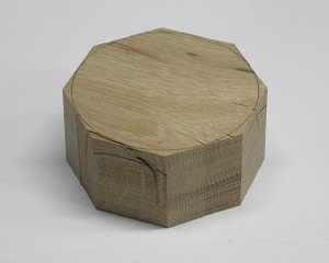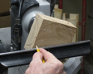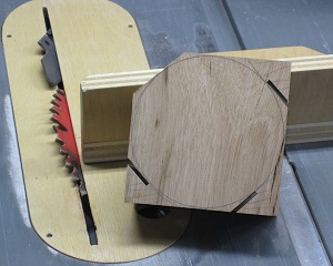 ![]() ![]() 5 — Keeping outside the circle you have drawn, cut away excess wood. The ideal tool for this is a bandsaw. If you don't have a bandsaw, then you can use a table saw, miter saw or even a handsaw to chop off the corners, making an octagonal blank, which at least isn't square.